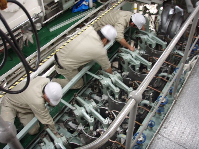 主機関の点検作業も続けています!