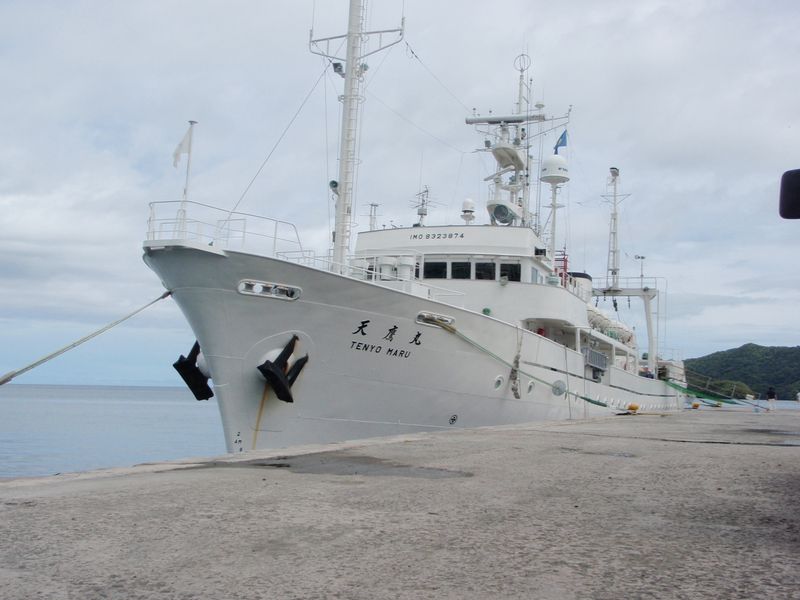 隣の岸壁に着岸中の沖縄水産高等学校 海邦丸五世