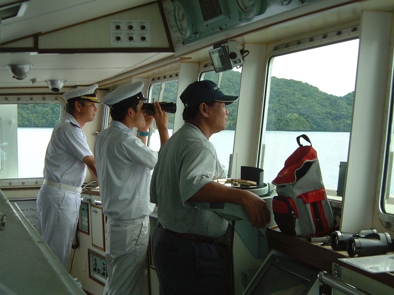 パラオ出港直前の船橋