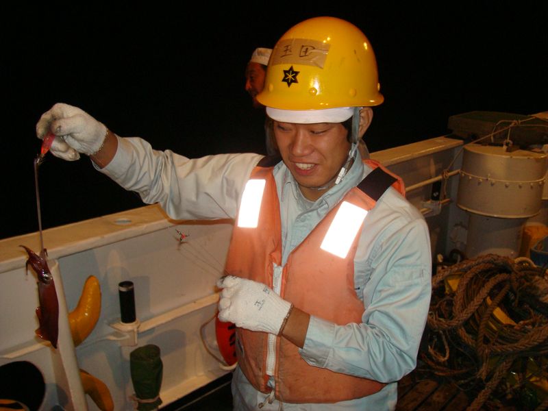 日没後のイカ釣り実習