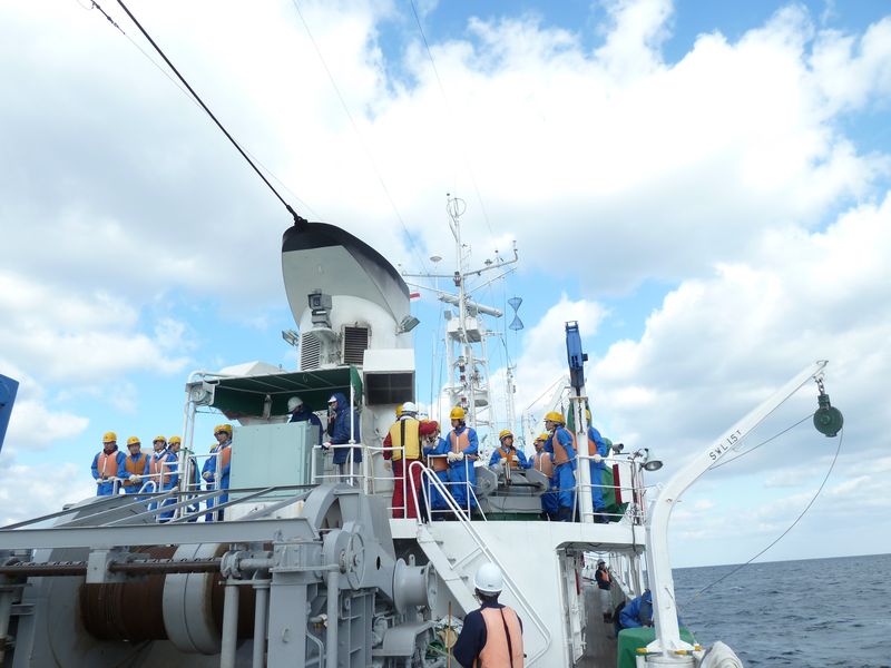 | 観測装置投入前の緊張感 |