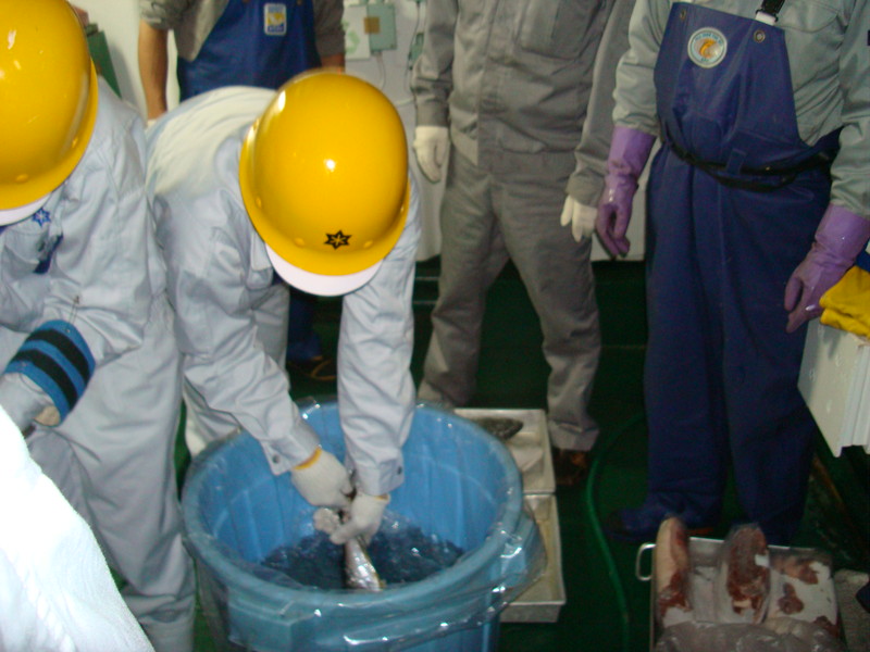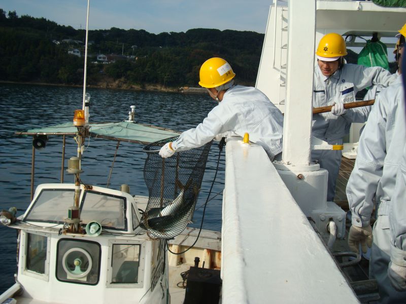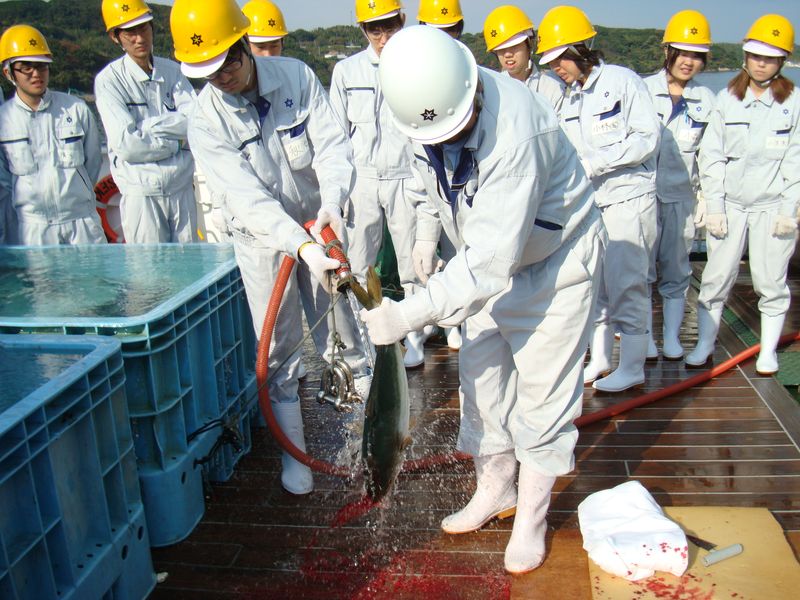 いよいよメインイベント鰤の洋上鮮度管理実習
