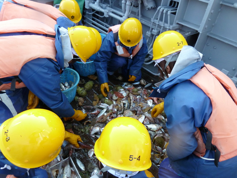 漁獲物の選別作業
