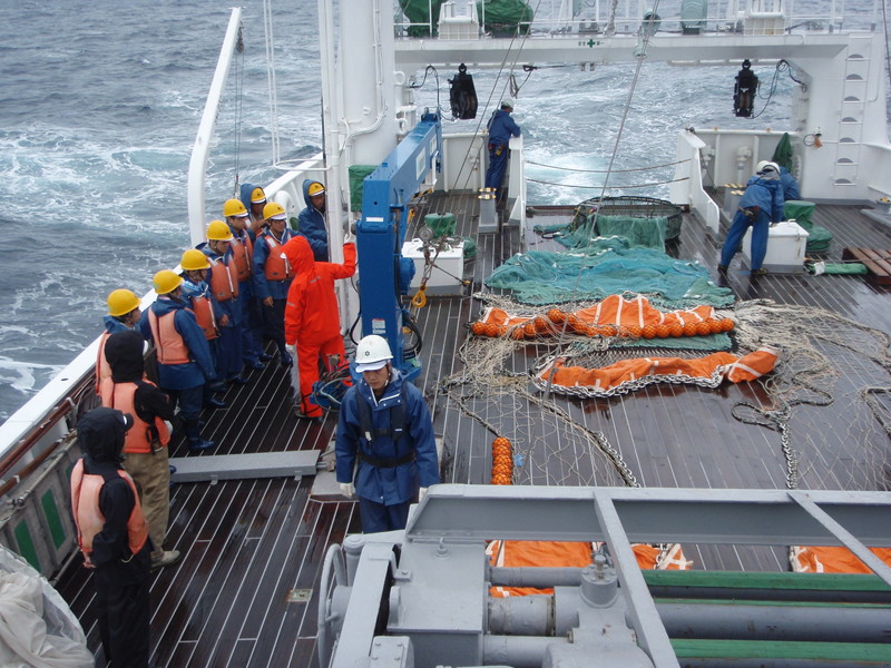 8/18 下関出港、船尾班作業の説明