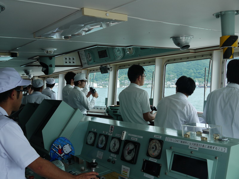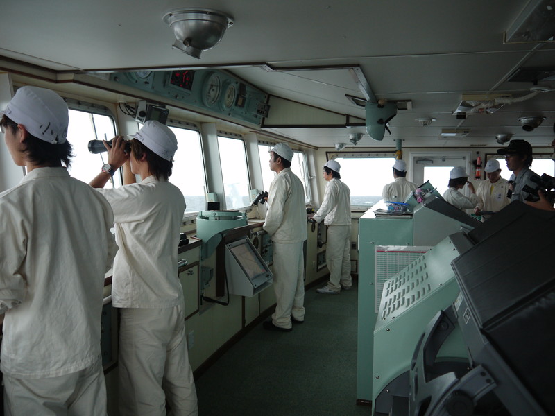 | 初めての船橋当直。地球が丸く見えるかな。 |