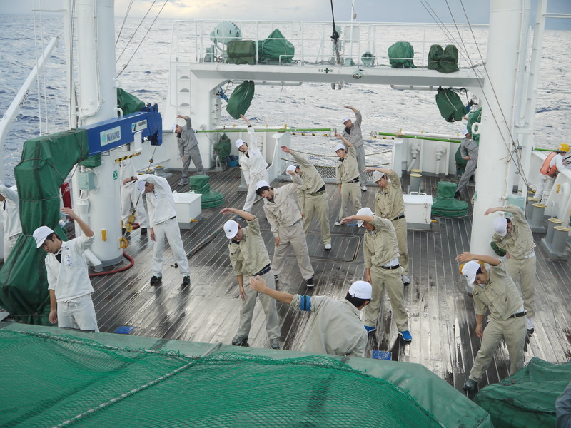 航海中の朝別科。ラジオ体操第一〜