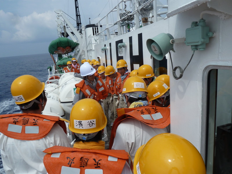 救命筏部署操練。ビシッとできてます。