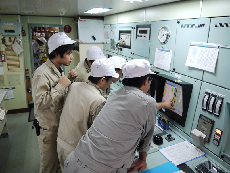 機関当直 作業の説明を受けます。