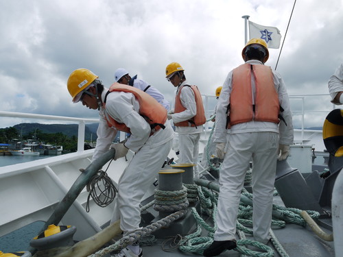 出港作業の船首配置。