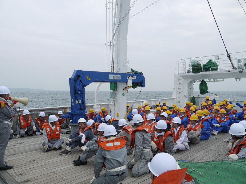 緊急時の為に、退船操練を実施しました。