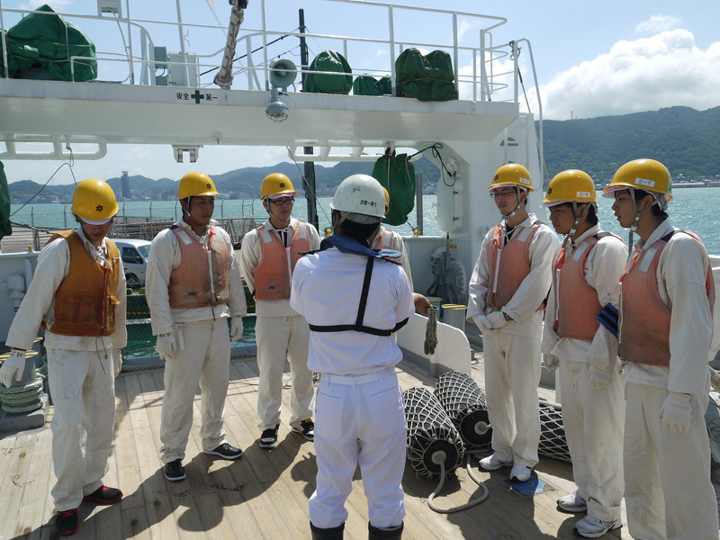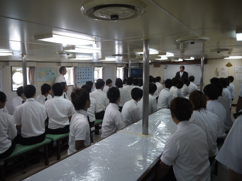 下川学科長の挨拶。初めての乗船実習開始です。