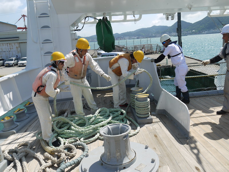 船尾班はシングルアップの作業中です。