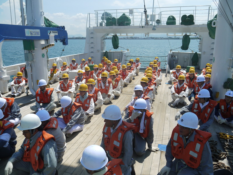 救命筏部署操練を行いました。