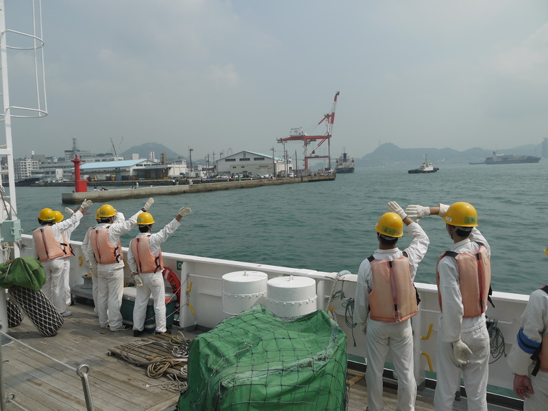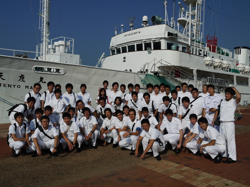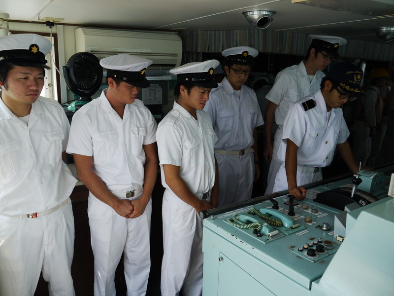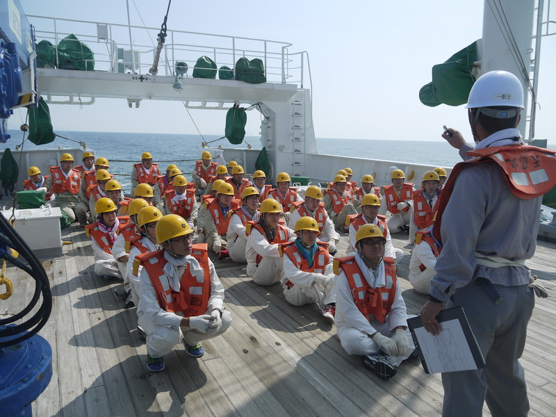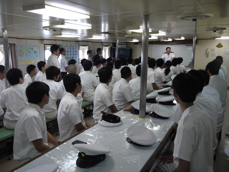 | 鎌野船長の挨拶で乗船実習開始です。 |