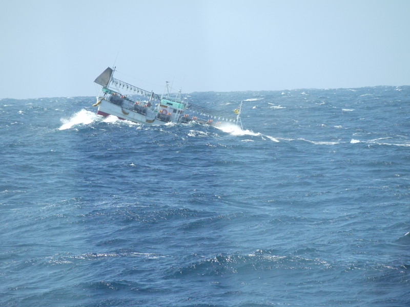 | 台風15号によるうねりです。イカ釣り漁船が・・・ |