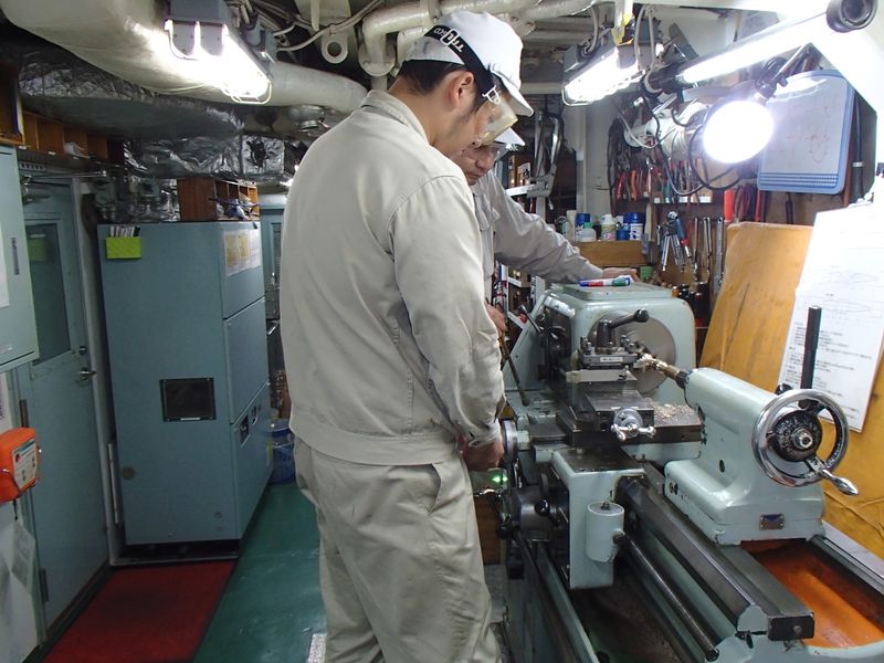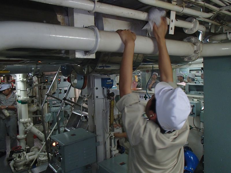入港前に機関室内の掃除を行いました。 |