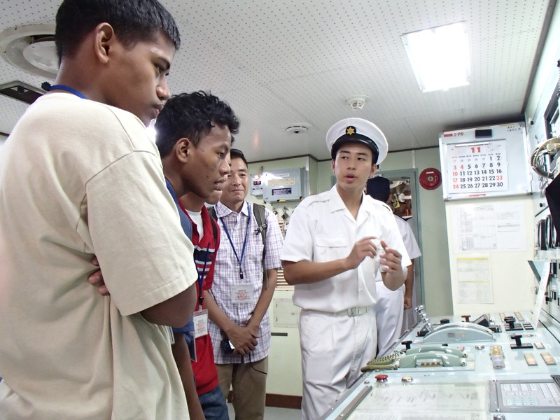 機関科学生も操業時の説明を受けます。 |