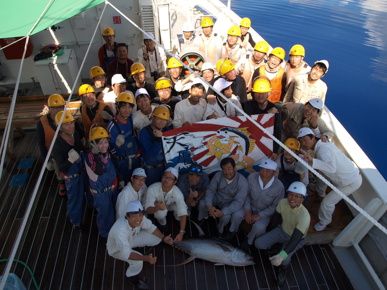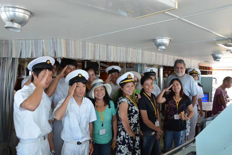 ブリッジで記念撮影。 |