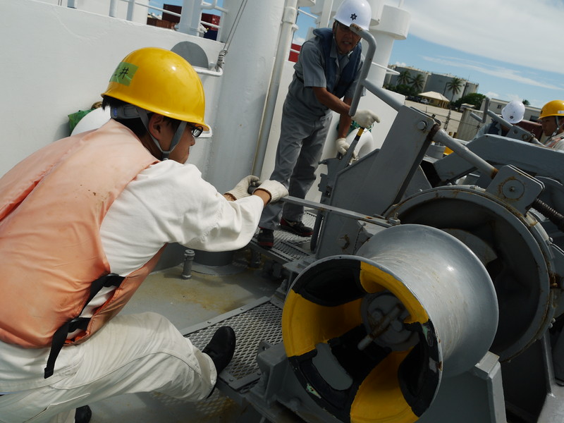 | ラインをレッコして出港します。船首配置 |