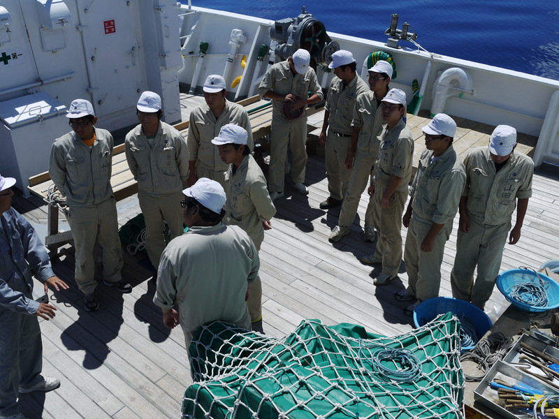 | 朝別課の様子。2日停泊後、調査に向けて出港です。 |