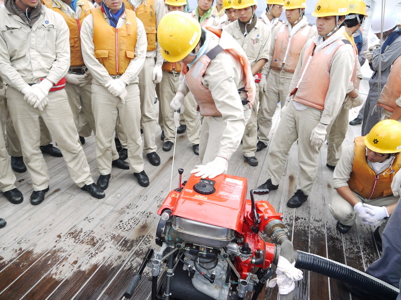 | 非常消火ポンプの始動方法を教わり、 |
