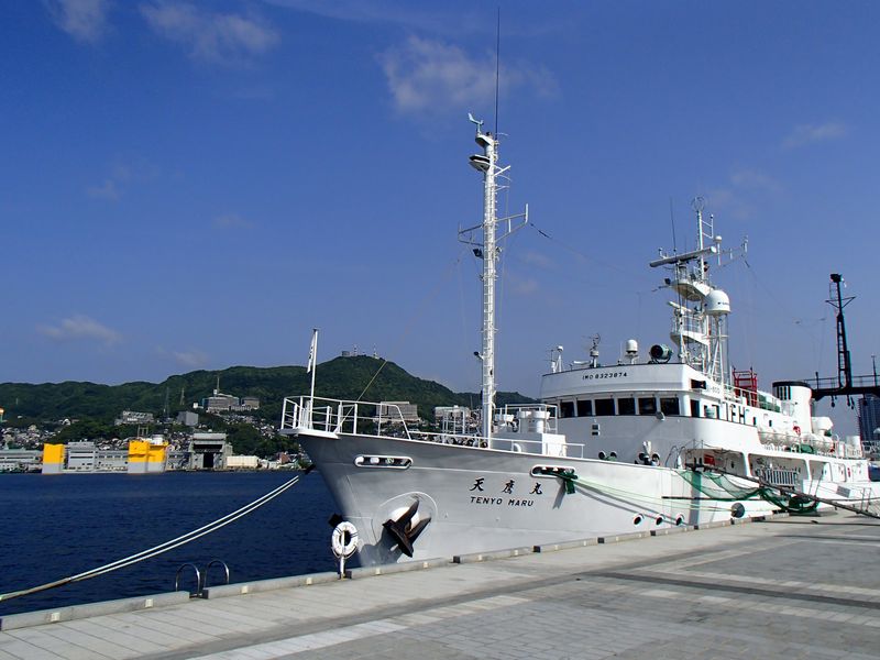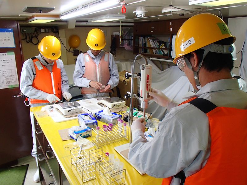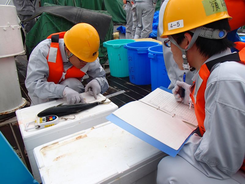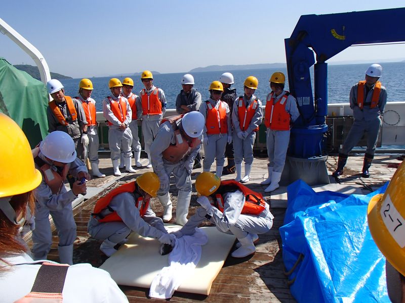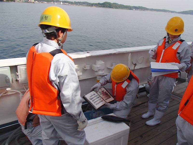 | 松浦湾にて錨泊し、鮮度管理実習が始まりました。 |