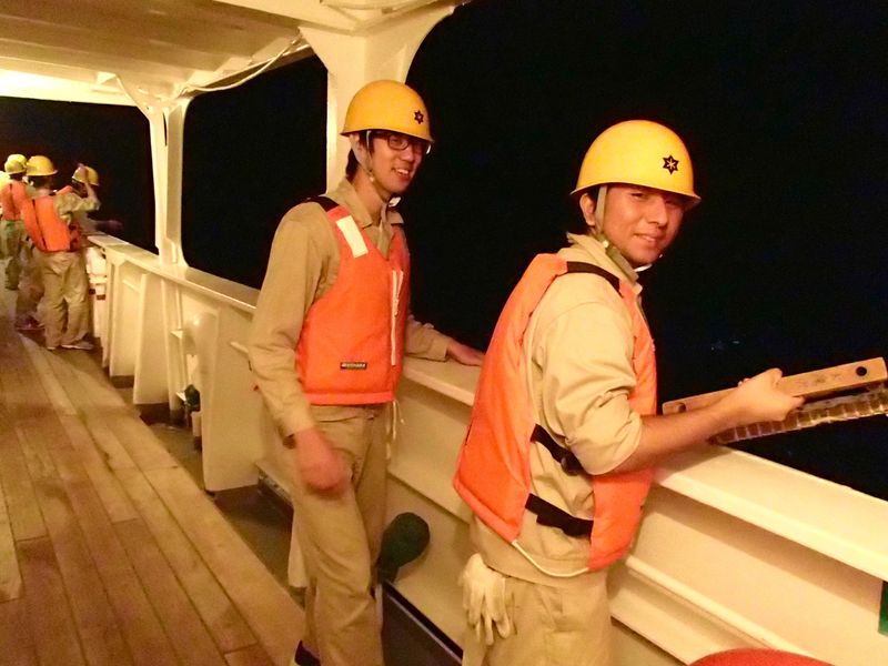 | 舞鶴出港時の船首配置の様子です。 |