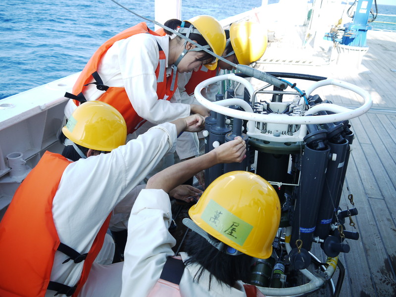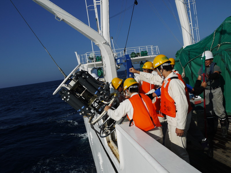 CTDで海の中を観測します。