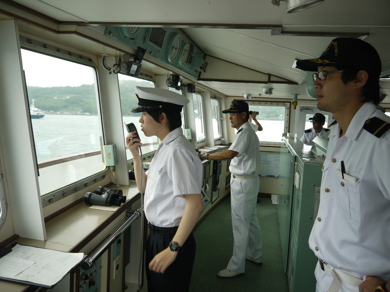| 佐世保入港のため、各部にマイク連絡をします。 |