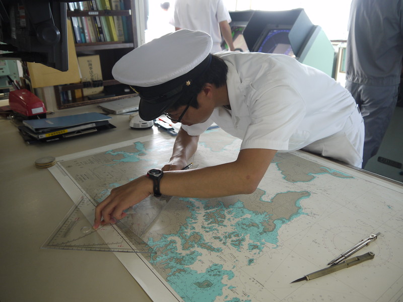 港内での船位確認は素早く行います。 |