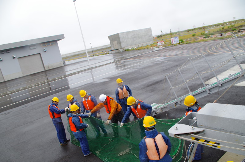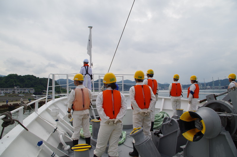 | 函館出港です。作業前説明を受けます。 |