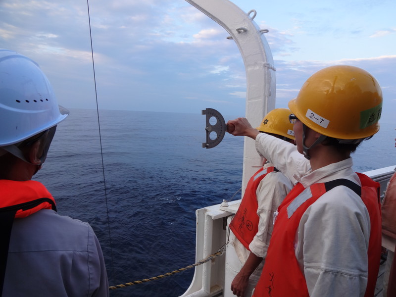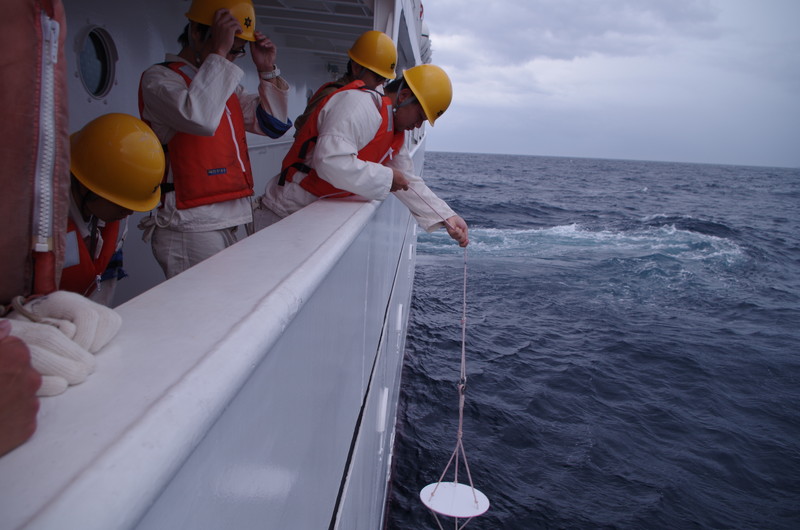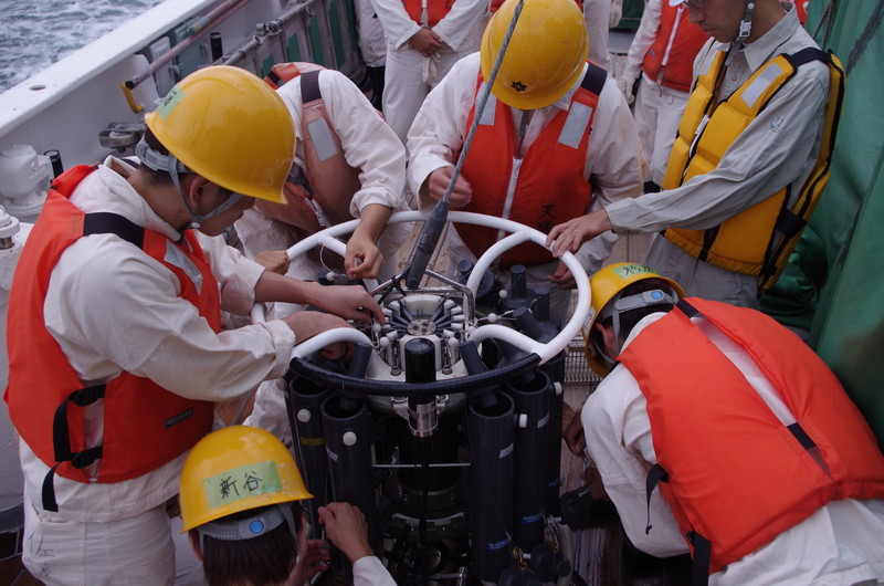 | 観測実習。CTDの取り扱いを聞いて、 |