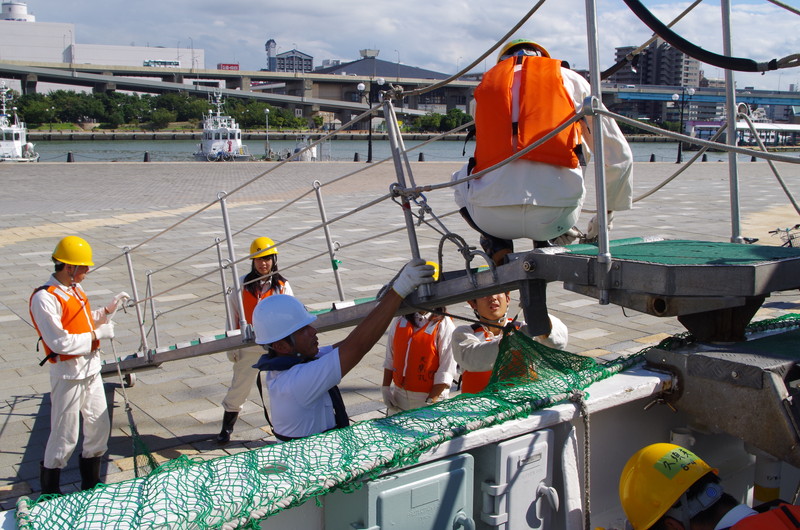 実習を活かしてタラップ用具の固縛がうまくできました。 |