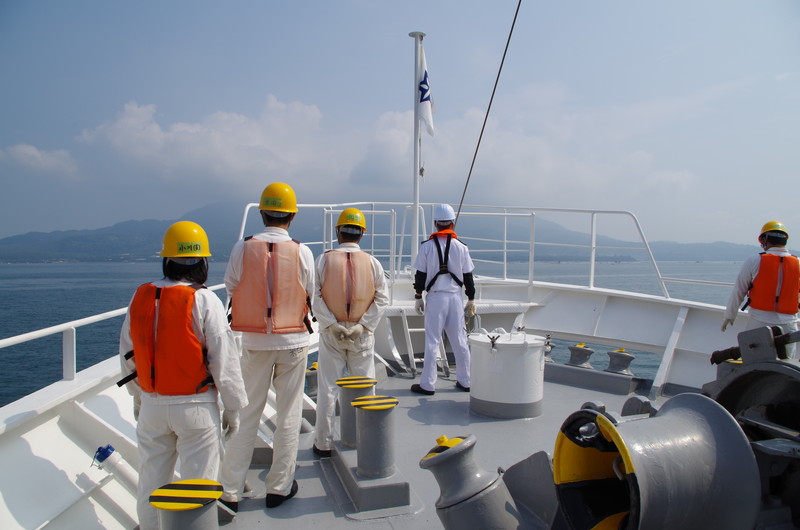 | 台風の影響で、桜島を望み錨泊です。 |