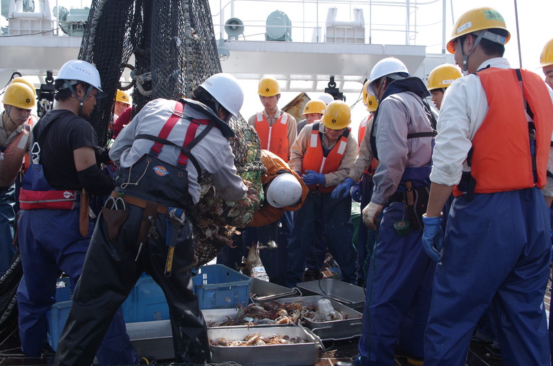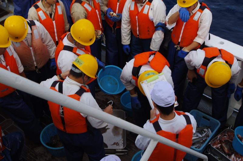 | 全員で漁獲物を選別して、 |