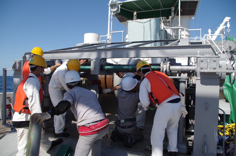 重いワイヤーを力合わせて動かします。 |