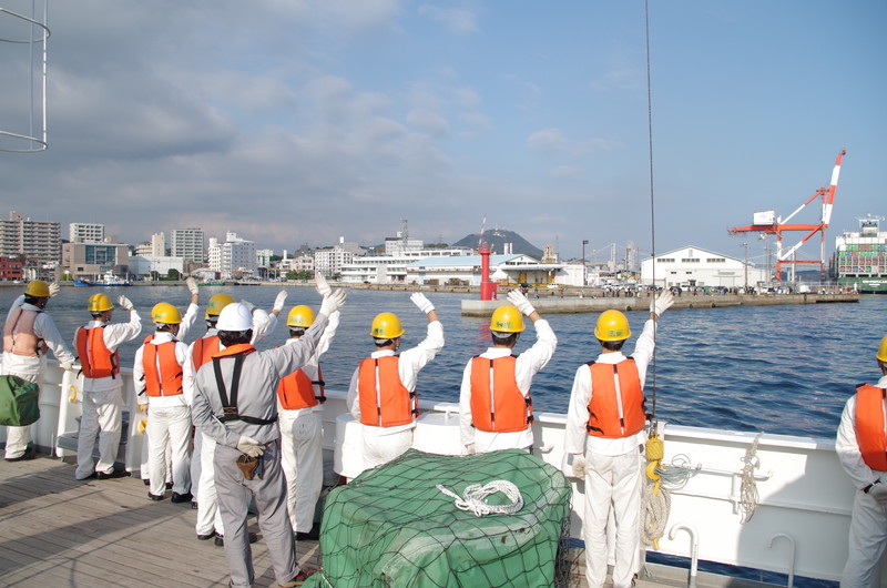 出港前の見回りをします。 |