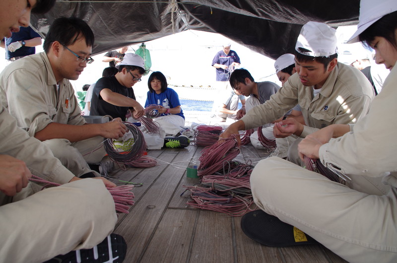 みんなで漁具を仕立てていきます。 |