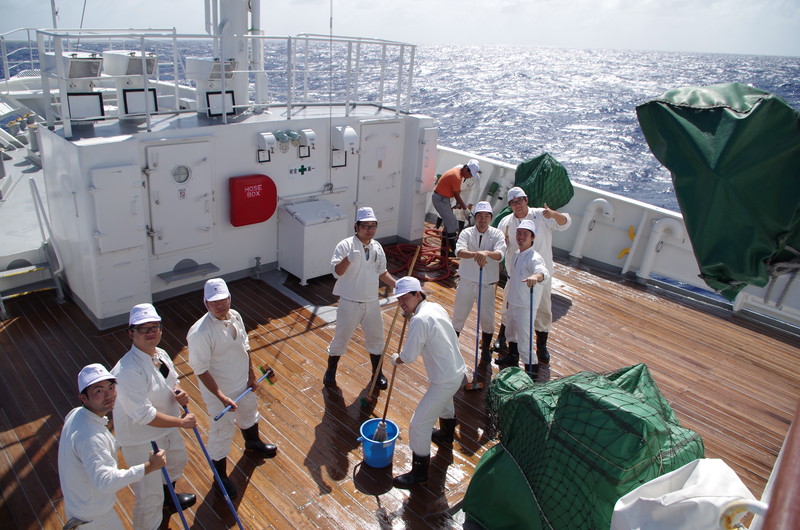 | 入港前にDeck Washします。 |