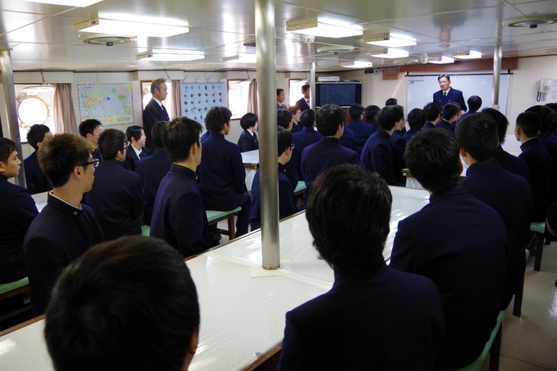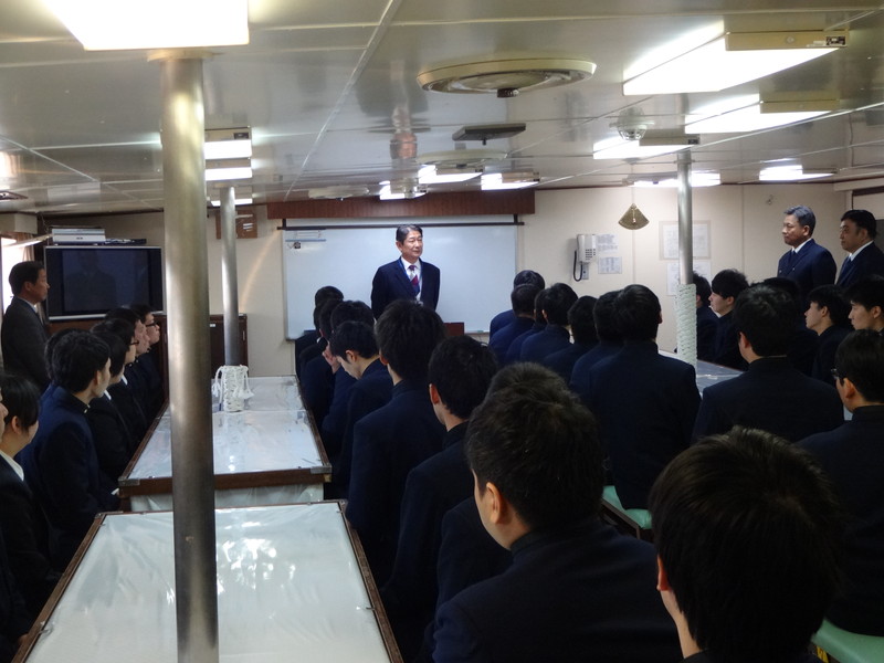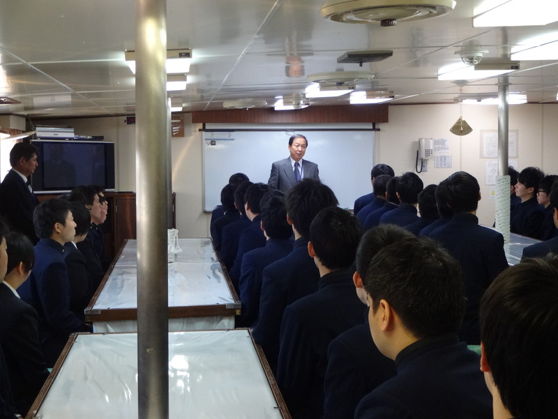 | 平成28年度専攻科乗船式。下川学科長のあいさつ。 |