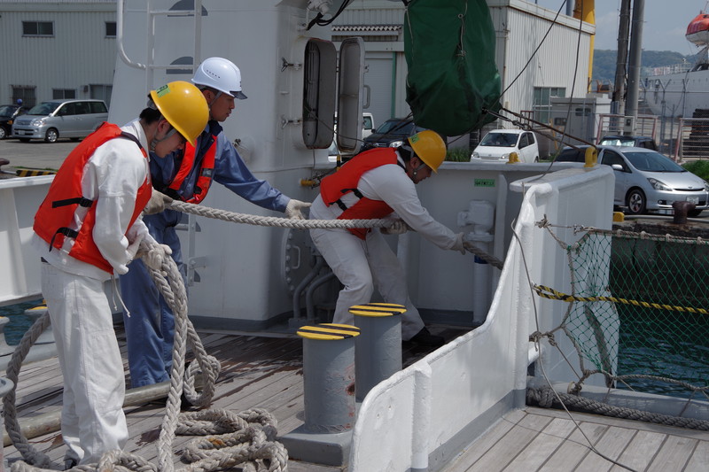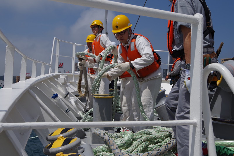 ホーサを取って下関入港です。 |