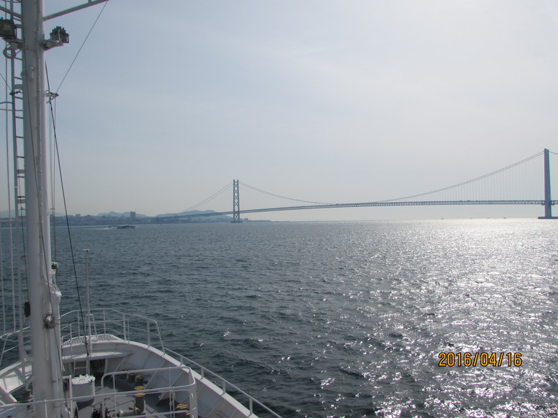 明石海峡を望む。大阪湾に向かい瀬戸内海を出ます。 |