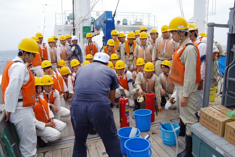 航海の途中、泡消火器の説明を受けました。 |