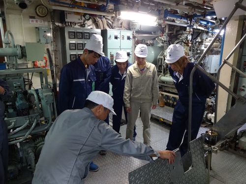 機関室を見学させてもらっています。