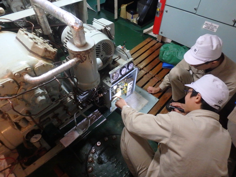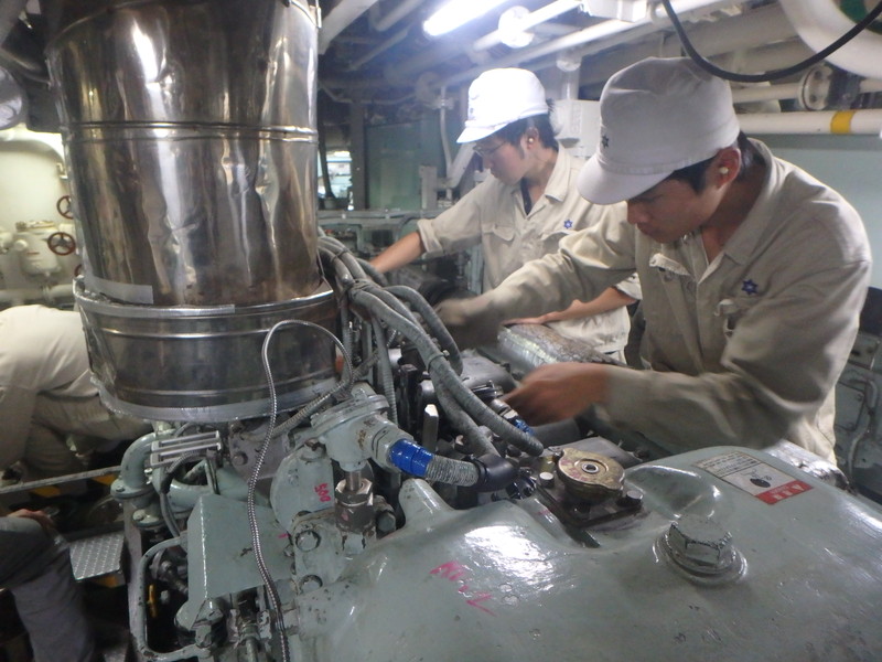 | 出港に合わせて学生だけで発電機関を運転しています。 |