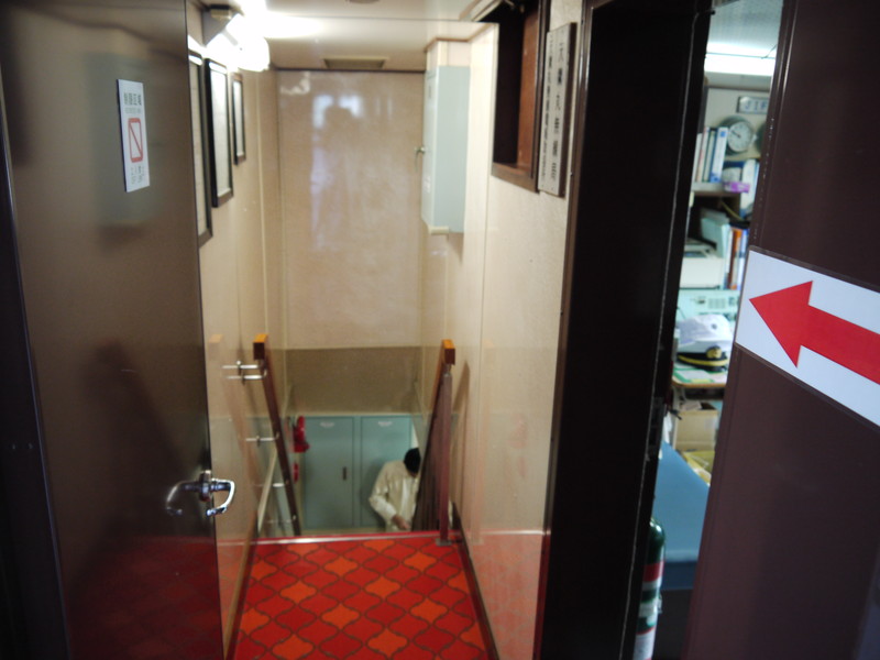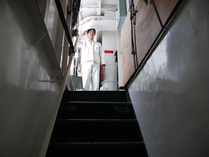 | 船って階段が急なんですね。 |