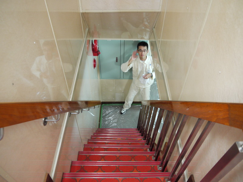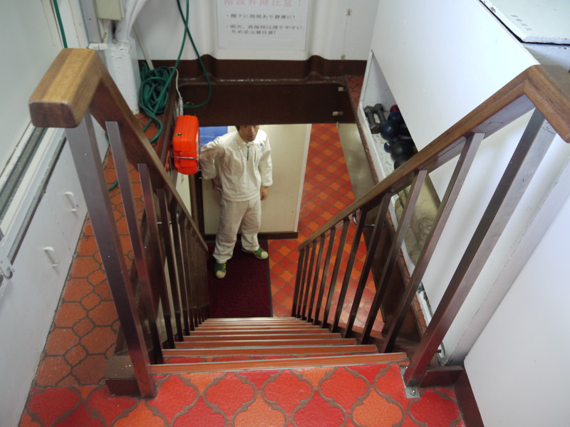 「仕切りと階段気をつけて下さい。」 |