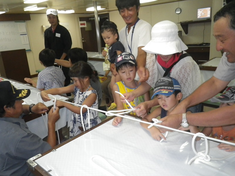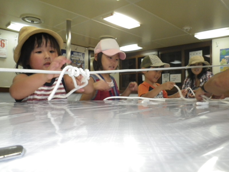 「もやい結びできたかなぁ〜。」 |