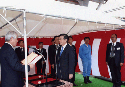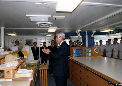下関市三菱重工下関造船所において、水産庁、水産大学校、造船所の関係者など約