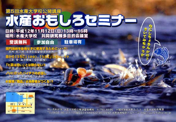 折角、水産大学校が下関にありますから、下関とお隣の北九州市の間にある歴史的にも有名な関門海峡に注目してみましょう。古くは源氏と平家の壇ノ浦の合戦、江戸時代には佐々木小次郎と宮本武蔵の巌流島の決闘、幕末維新は激動の地、昭和に入れば関門トンネル、関門橋、山陽新幹線の開通、平成の現在では観光スポットとして生まれ変わるなど、歴史の流れの中でその名をアピールしてきました。
